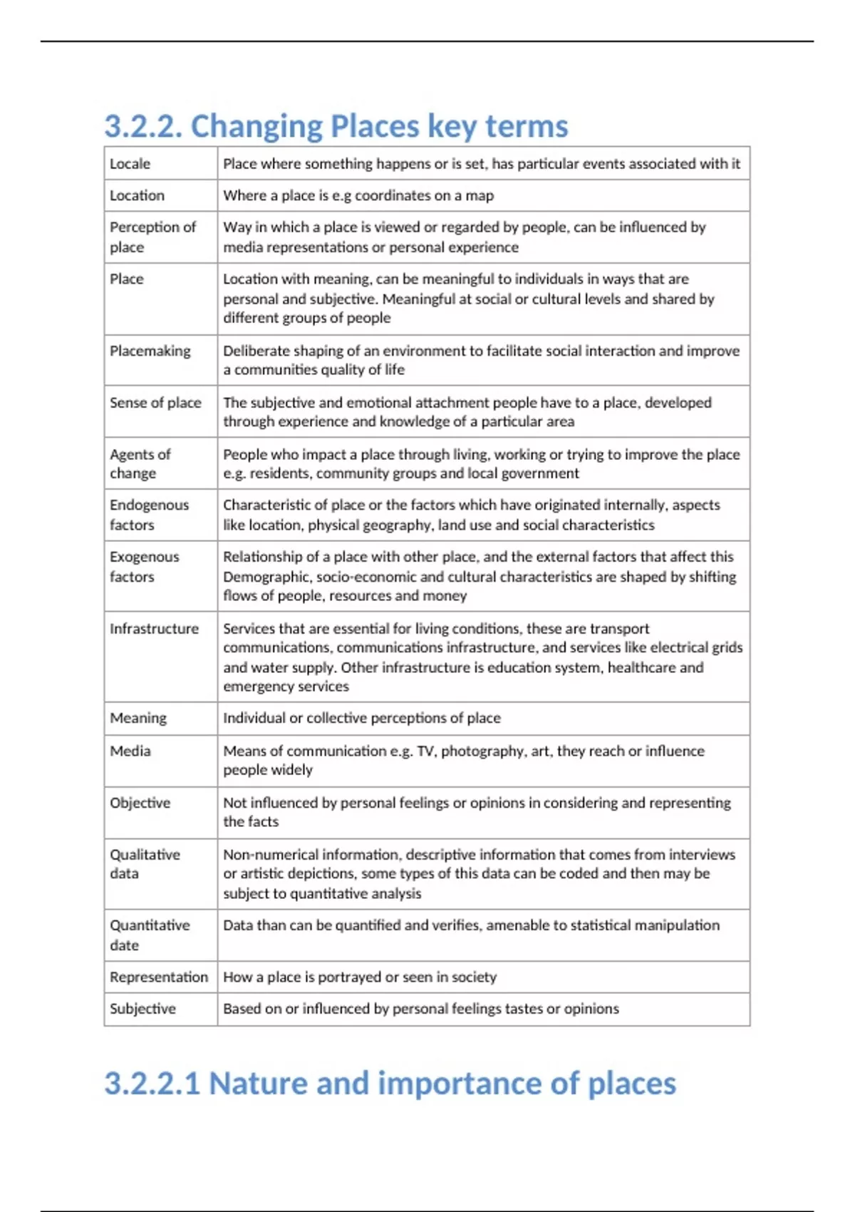 3.2.2.1 Nature and importance of places