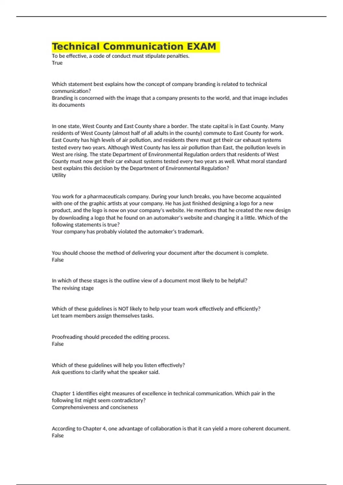 According to Chapter 1, most technical communication has six characteristics. One is that technical