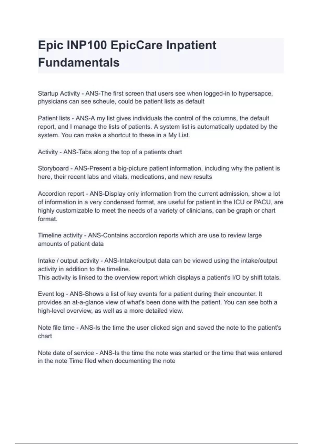 Epic INP100 EpicCare Inpatient Fundamentals.