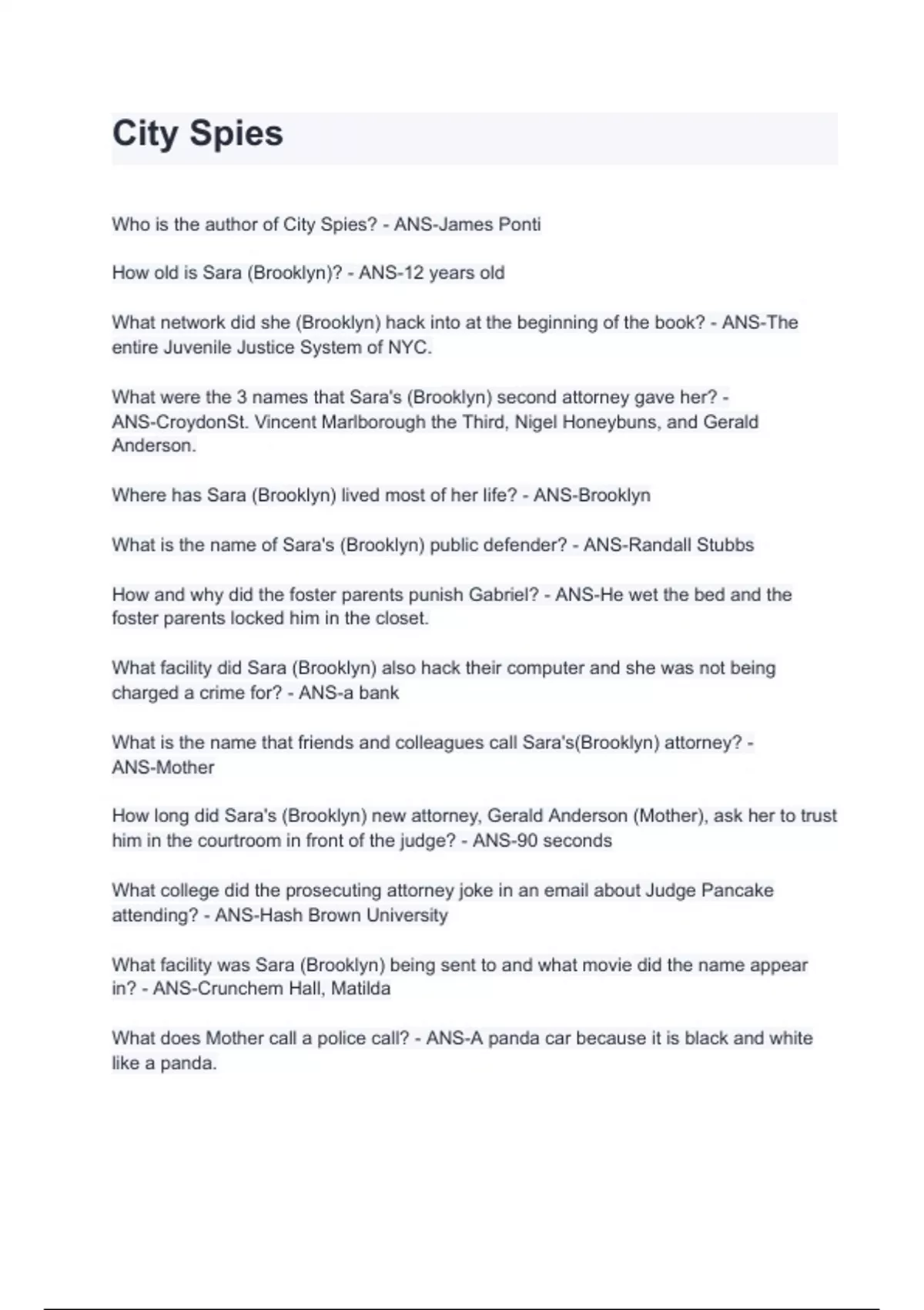 Exam of 10 pages for the course City Spies at City Spies (City Spies)