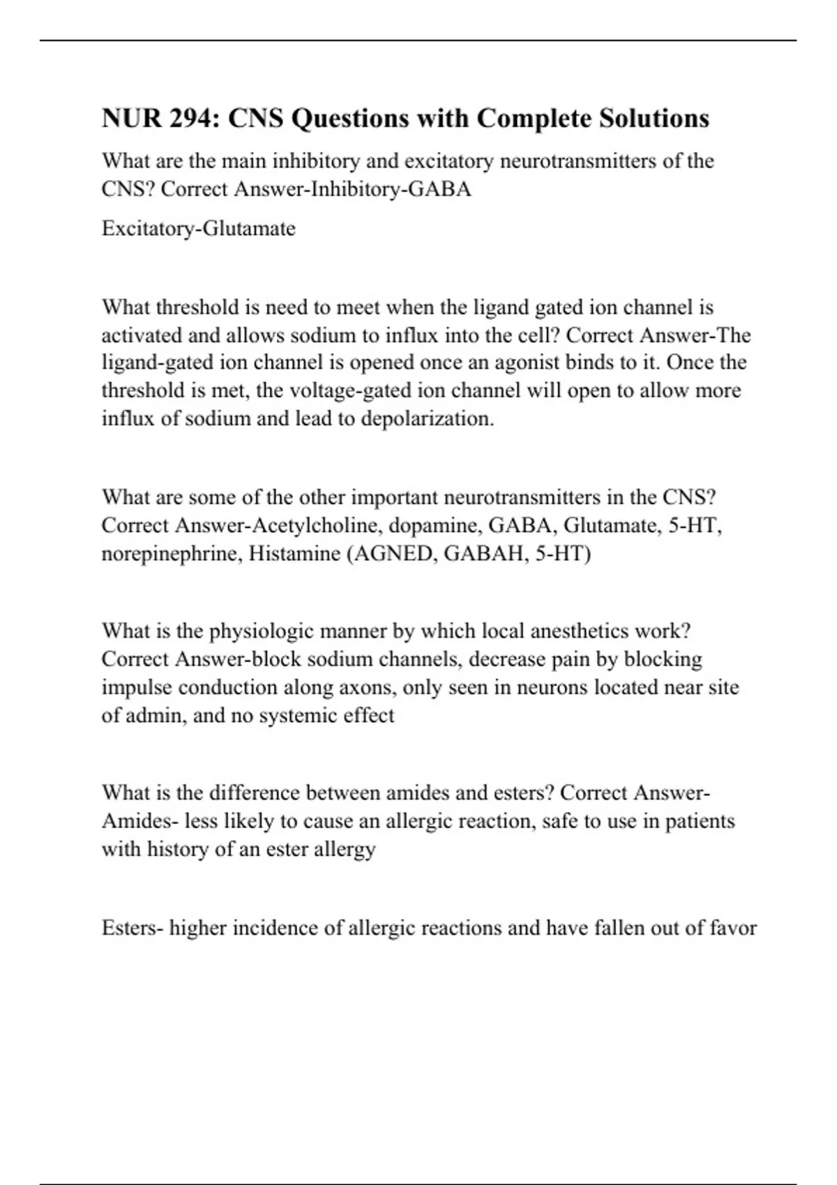 NURS 294 - Exam 1 Questions with Complete Solutions