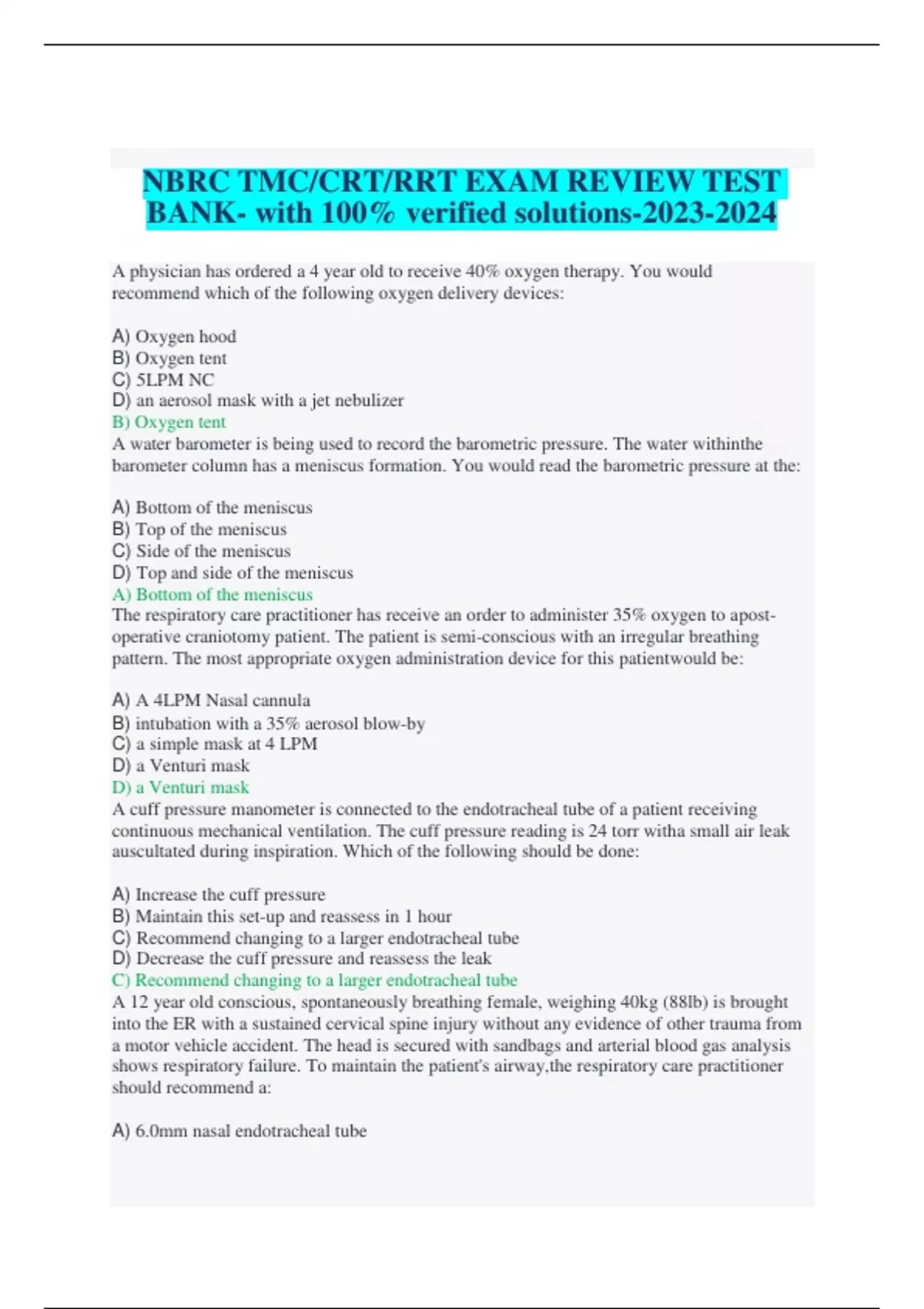 NBRC TMC-CRT-RRT EXAM REVIEW TEST BANK- with 100% verified