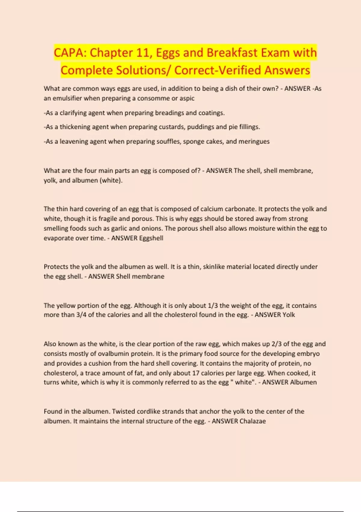 CAPA: Chapter 11, Eggs and Breakfast Exam with Complete Solutions/ Correct-Verified Answers