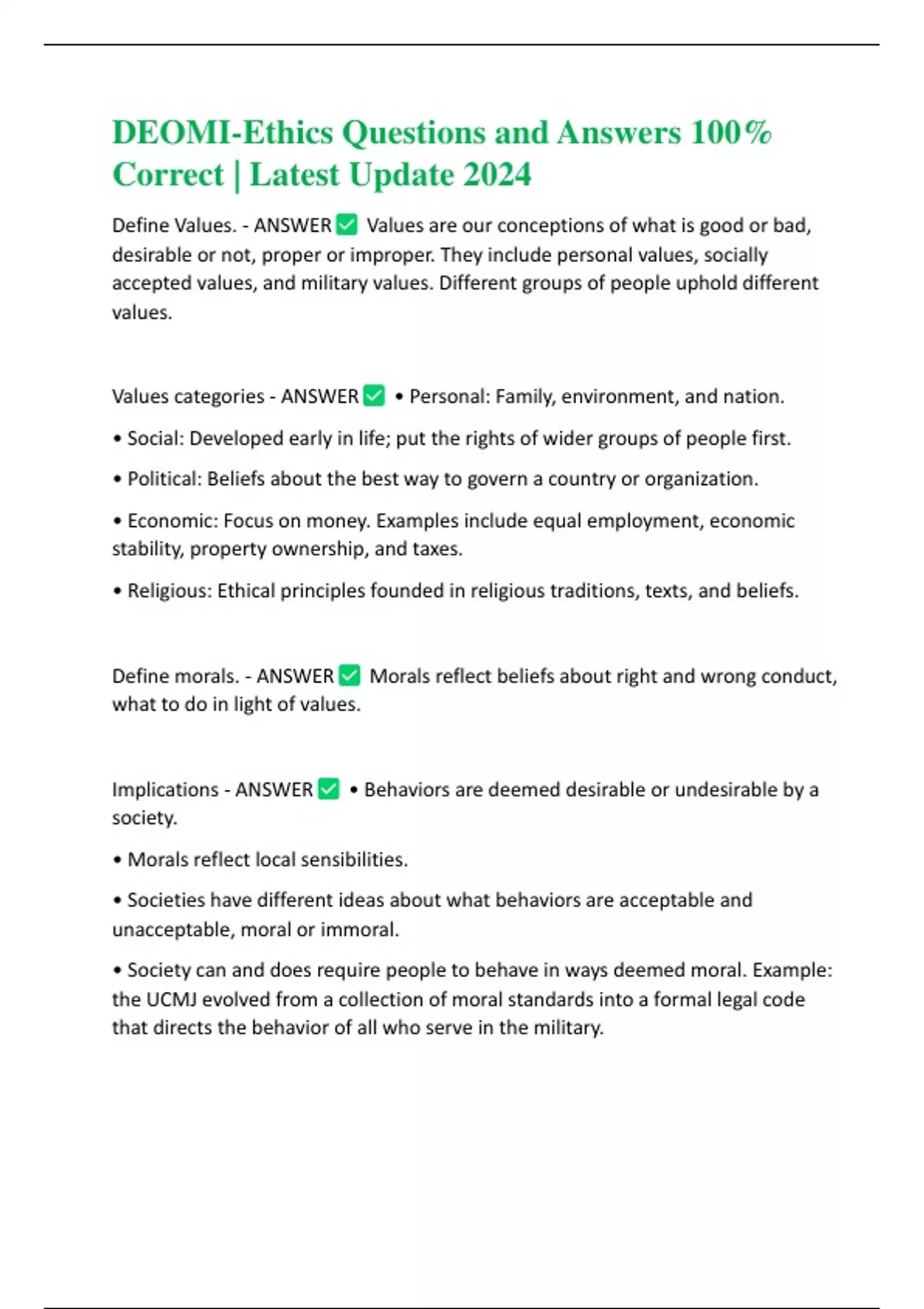 DEOMI-Ethics Questions and Answers 100% Correct | Latest Update 2024