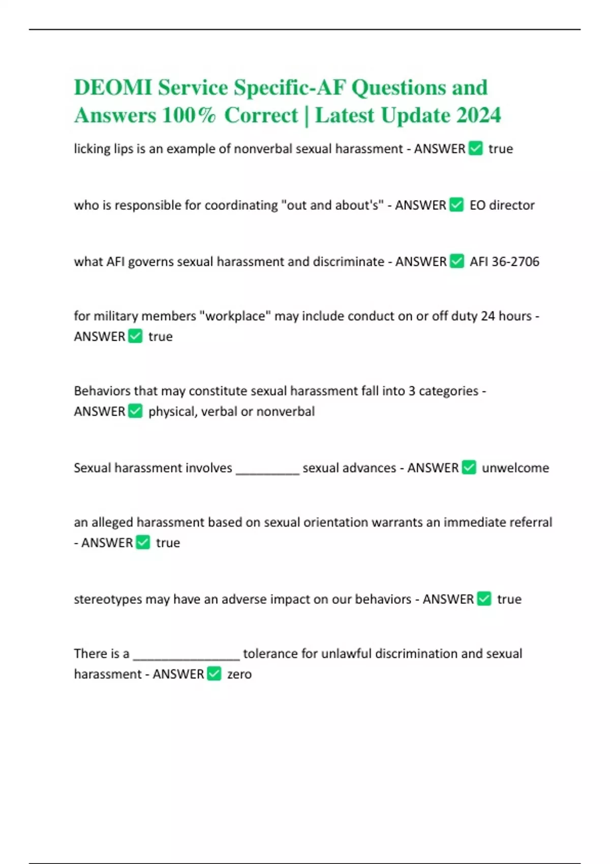 DEOMI Service Specific-AF Questions and Answers 100% Correct | Latest Update 2024