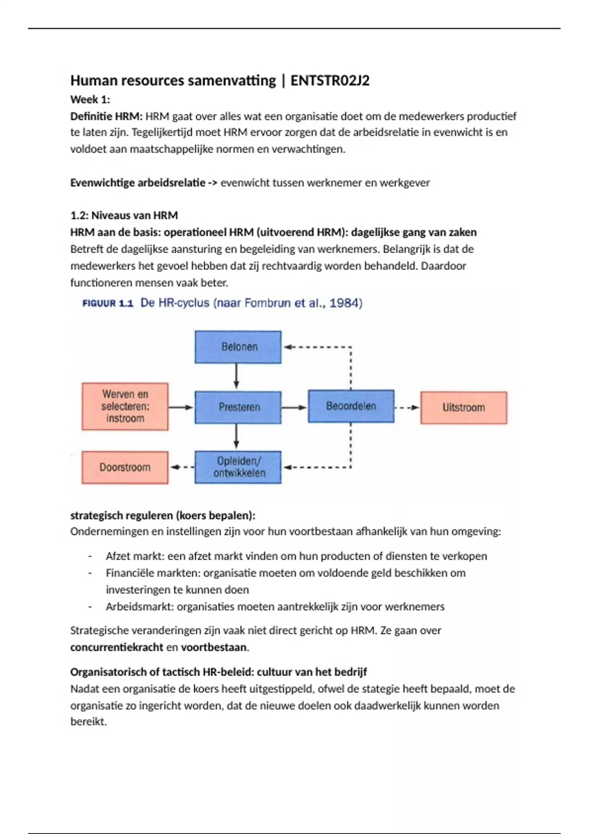 Samenvatting - Human Resources management (Samenvatting - Human Resources management (ENTSTR02J2)