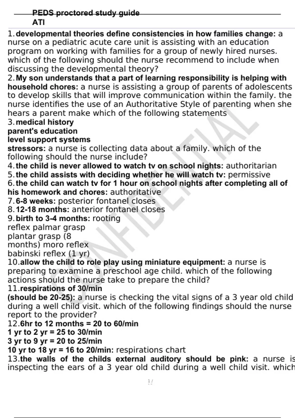 , PEDS proctored study guide