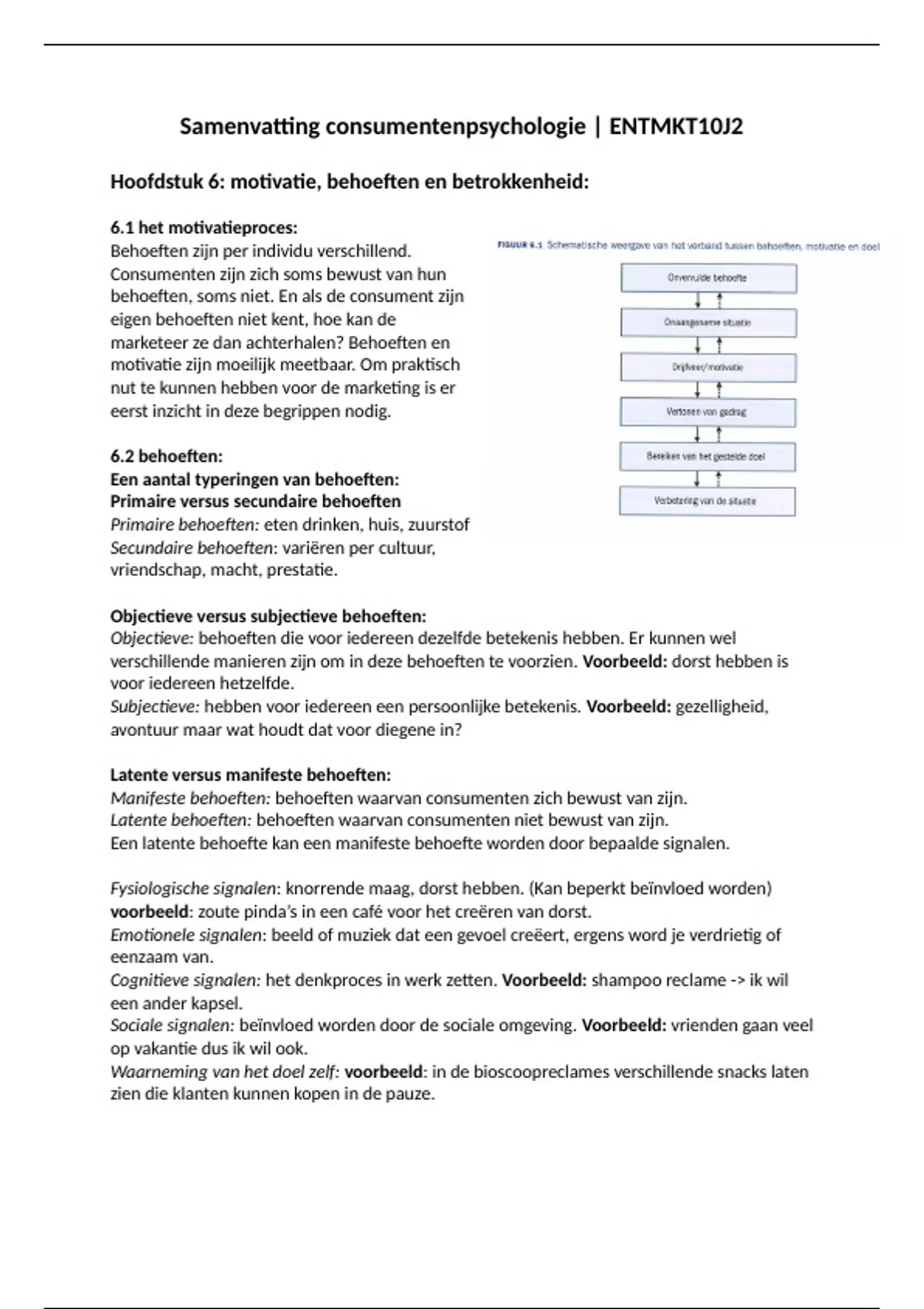 Hoofdstuk 6: motivatie, behoeften en betrokkenheid: