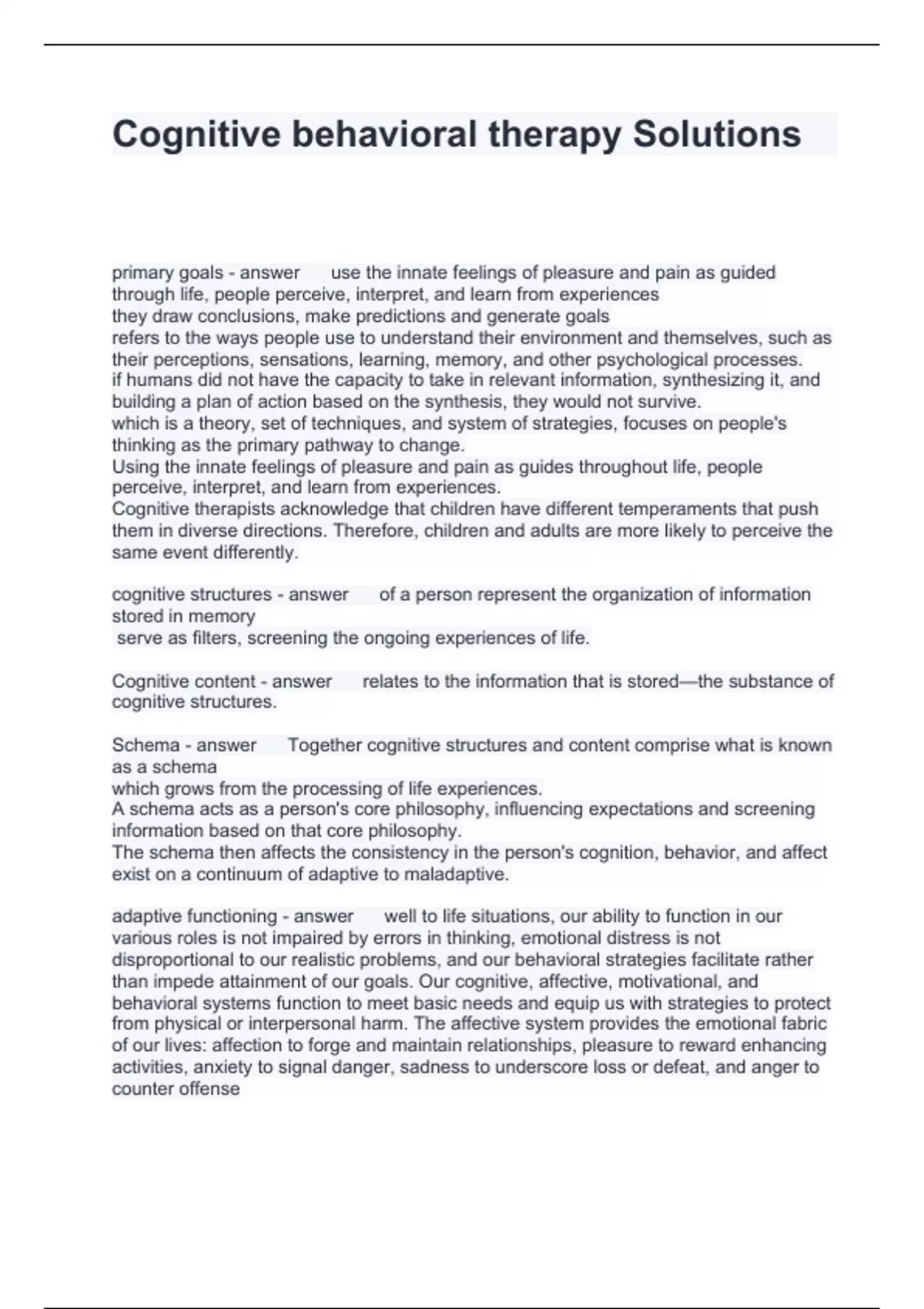 Cognitive behavioral therapy Solutions Questions with correct Answers Graded A+