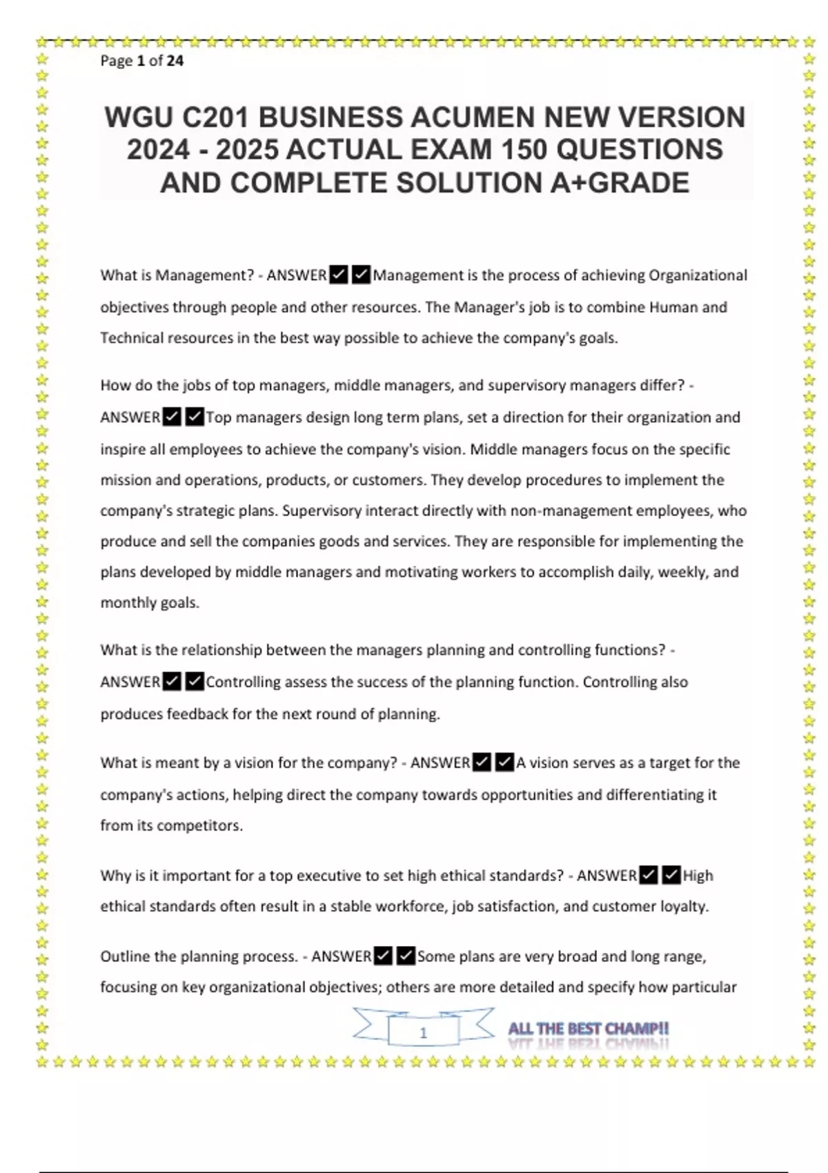 WGU C201 BUSINESS ACUMEN OBJECTIVE ASSESSMENT EXAM A