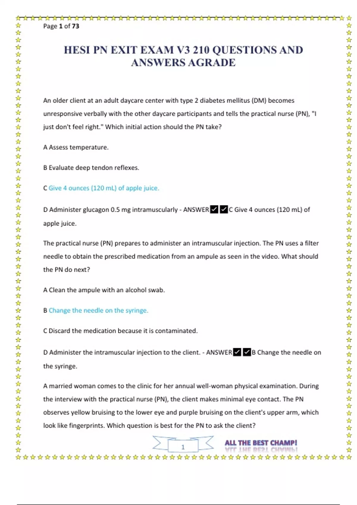HESI PN EXIT EXAM V3 210 QUESTIONS AND ANSWERS AGRADE