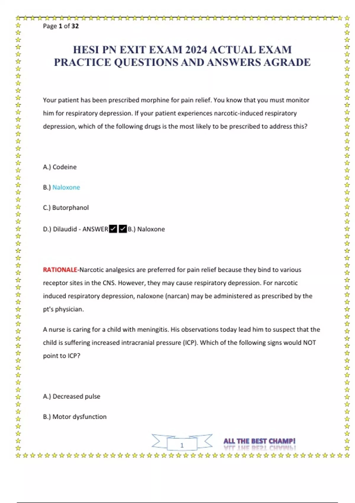 HESI PN EXIT EXAM 2024 ACTUAL EXAM PRACTICE QUESTIONS AND ANSWERS AGRADE