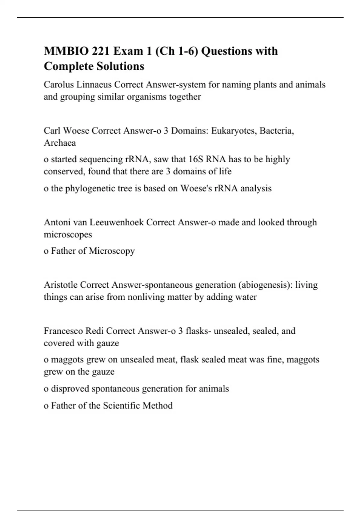 mmbio 221 exam 1 ch 1 6 questions with complete