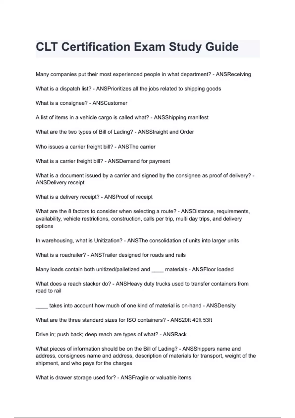 CLT Certification Exam Study Guide questions and answers A+ score assured 2024/2025
