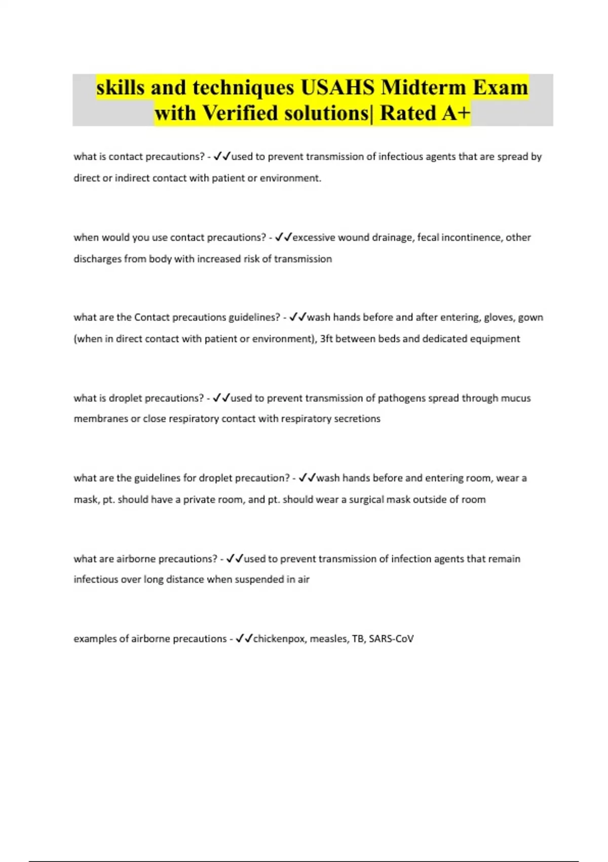 skills and techniques USAHS Midterm Exam with Verified solutions| Rated A+
