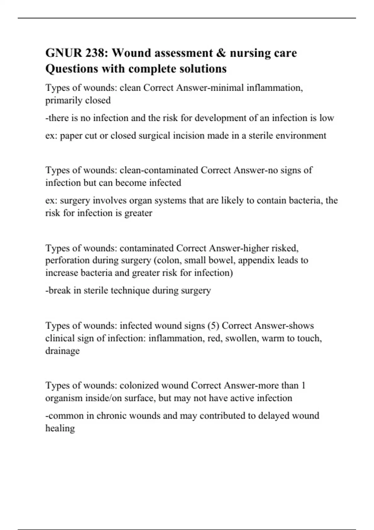 GNUR 238: Wound assessment & nursing care Questions with complete solutions