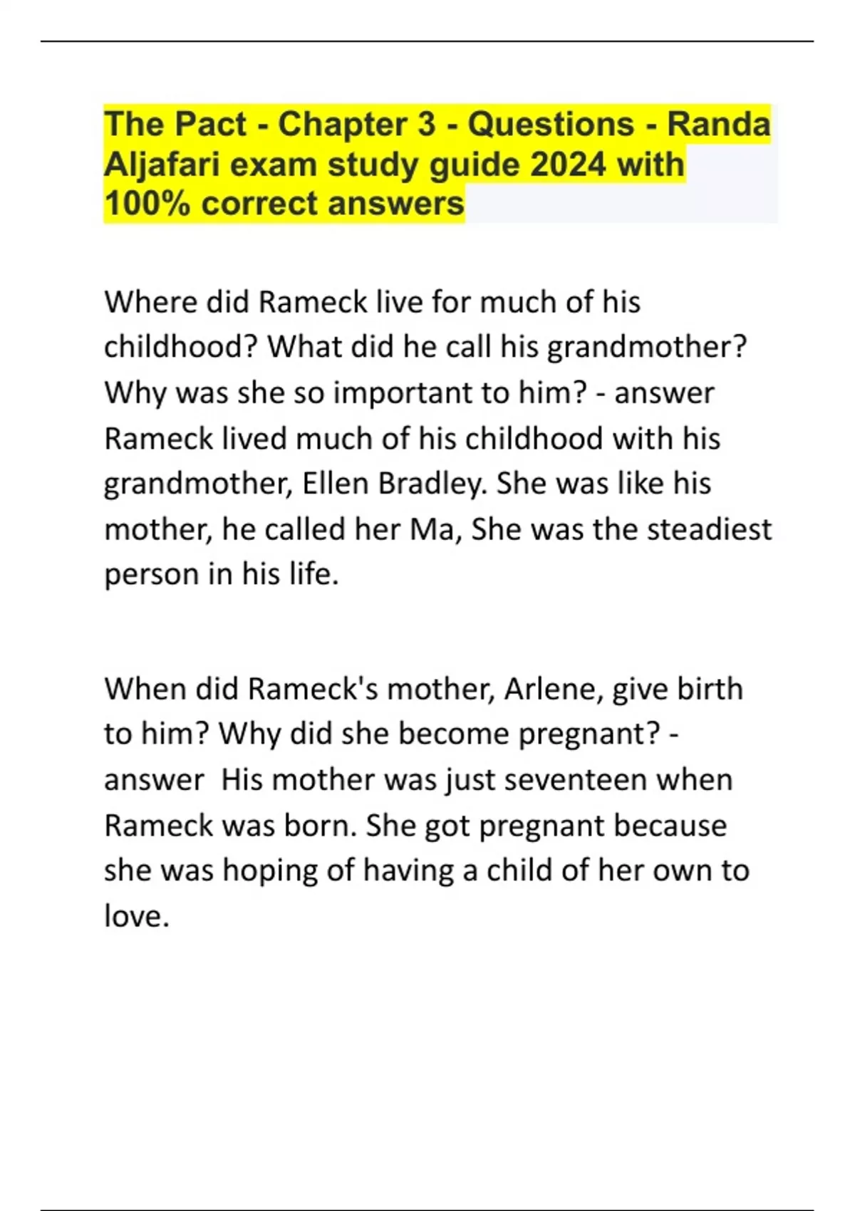 The Pact - Chapter 3 - Questions - Randa Aljafari exam study guide 2024 with 100% correct answers