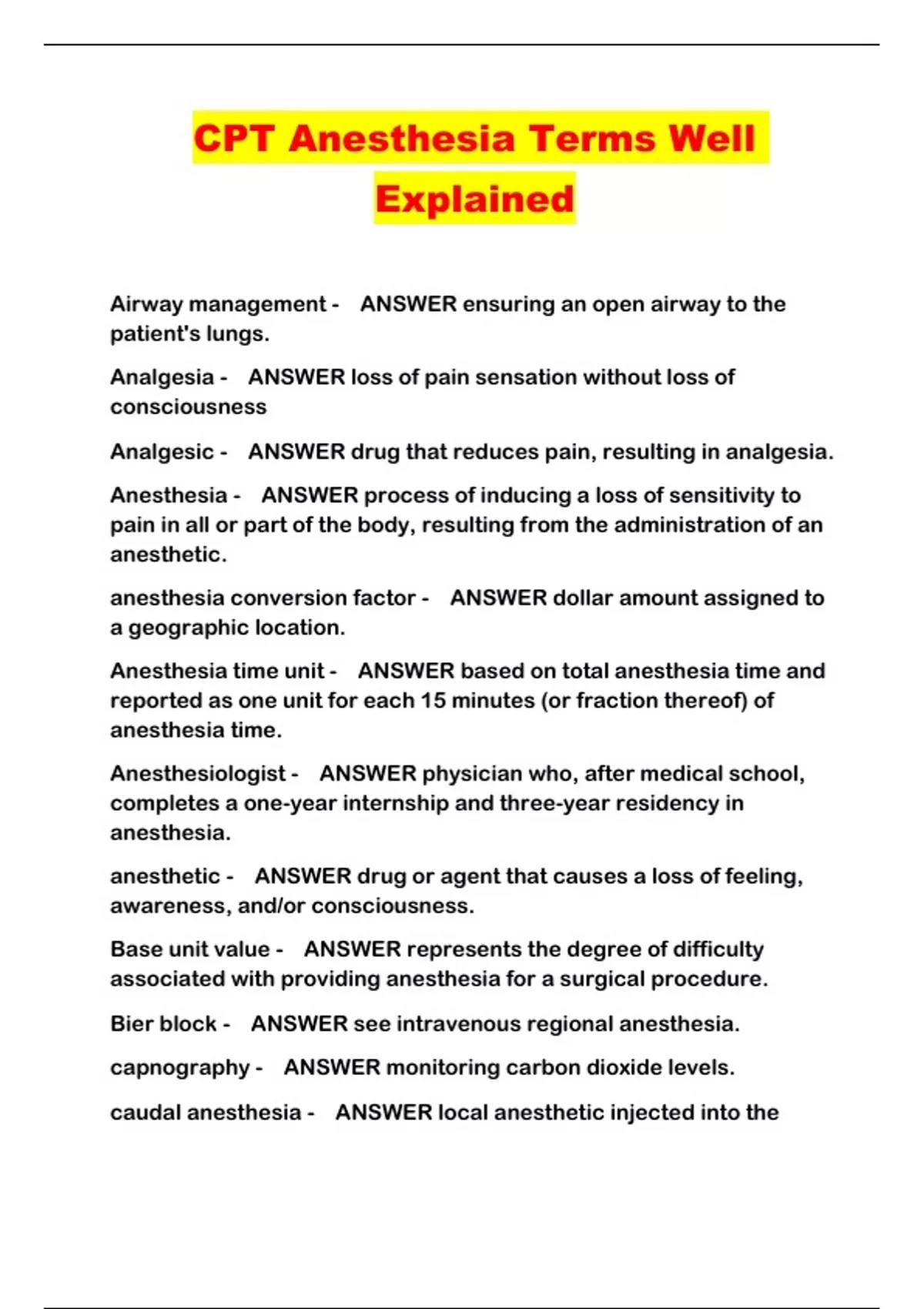 CPT Anesthesia Terms Well Explained...