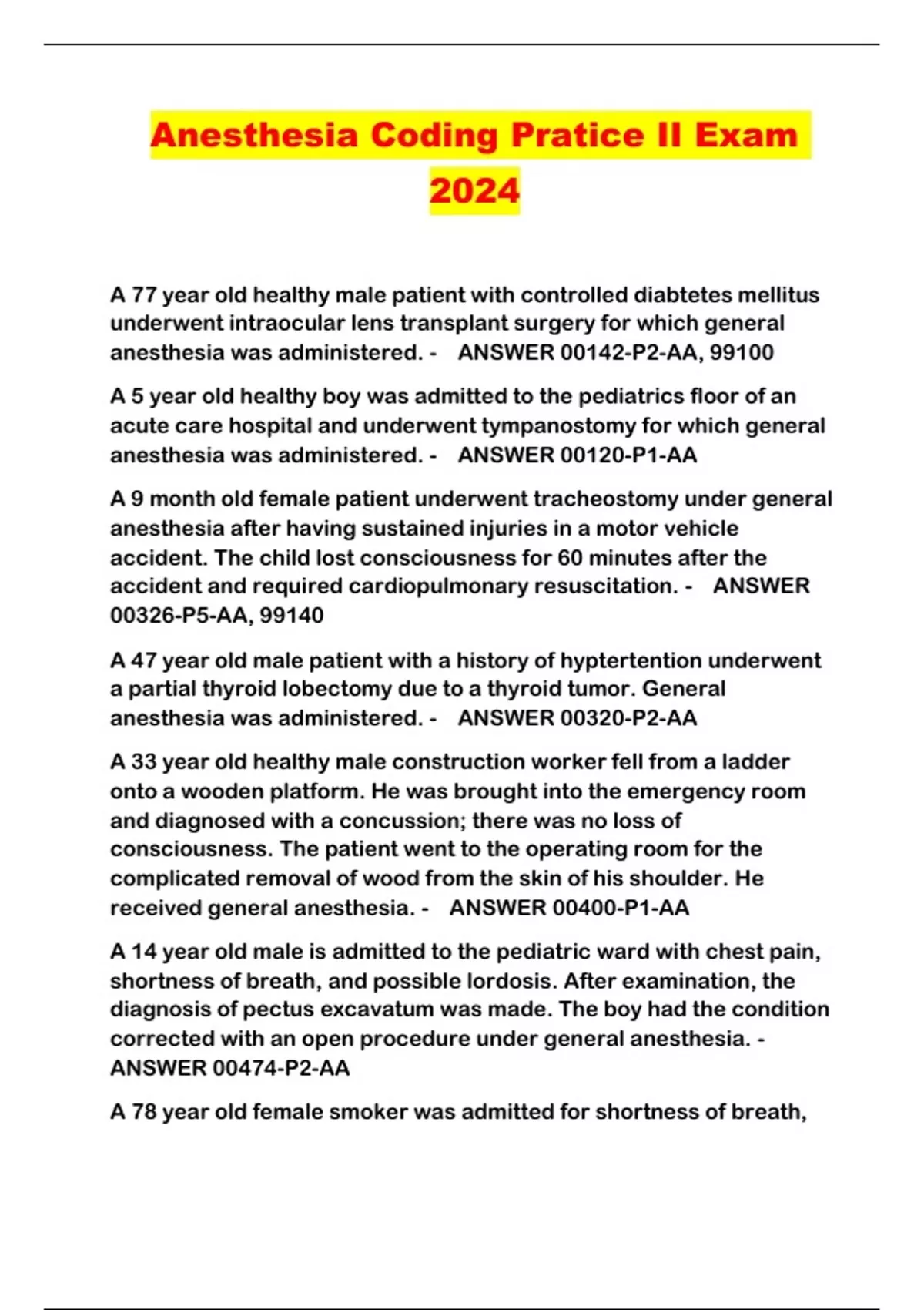 Anesthesia Coding Pratice II Exam 2024...