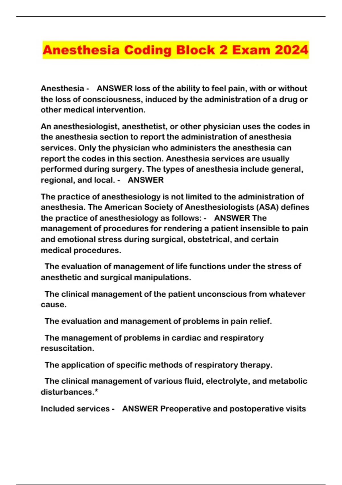 Anesthesia Coding Block 2 Exam 2024...