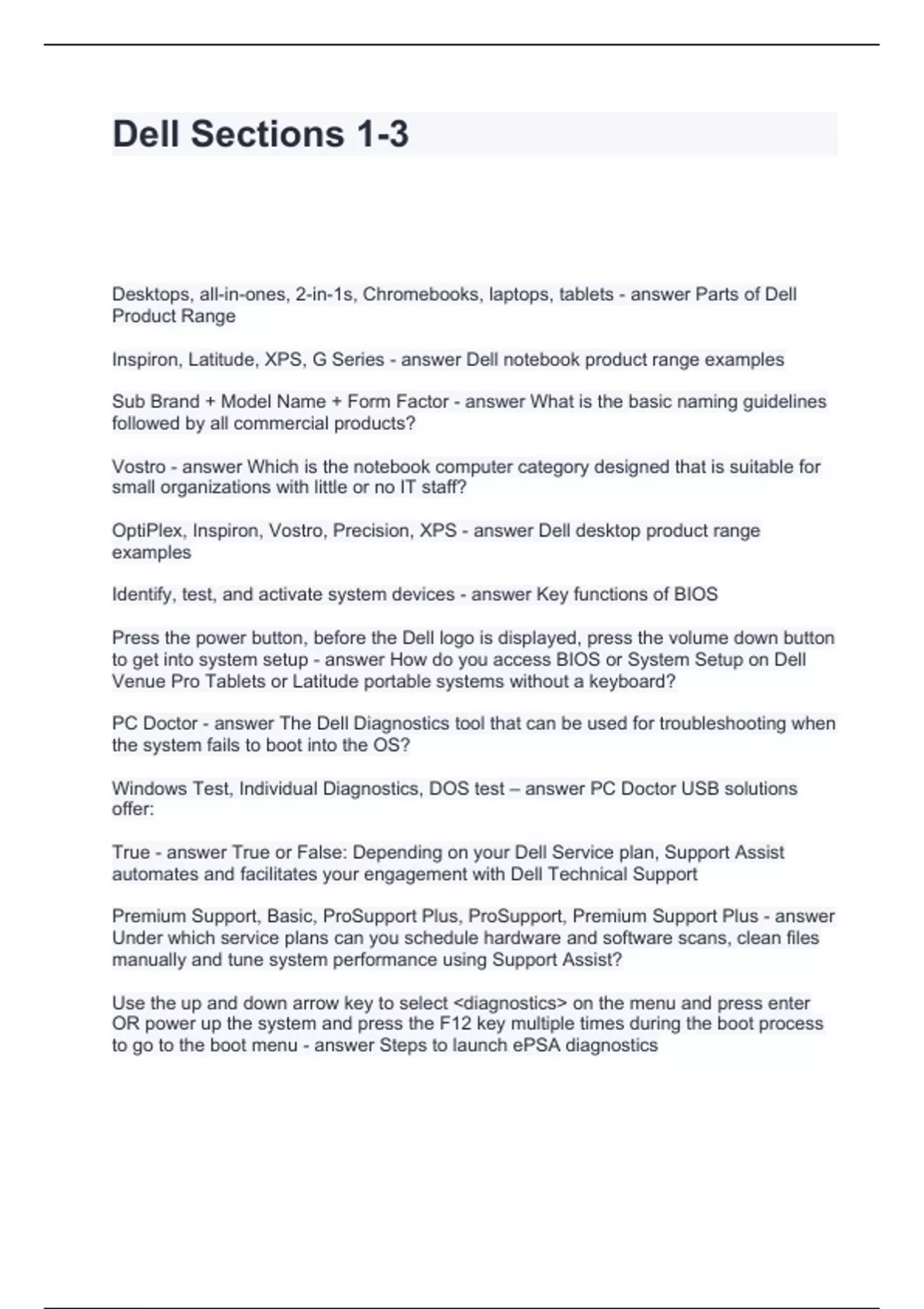 Dell Sections 1-3, Questions and Answers Graded A+