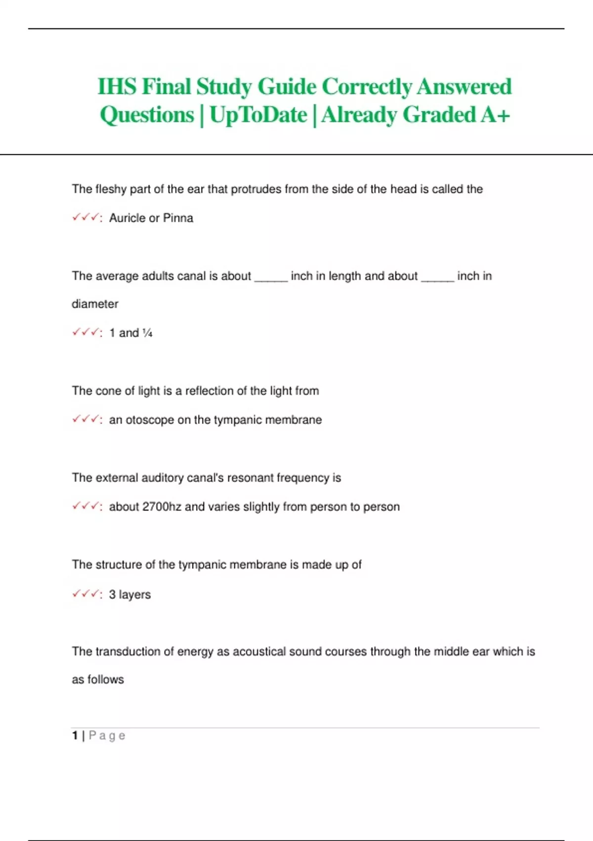 IHS Final Study Guide Correctly Answered Questions| UpToDate | Already Graded A+