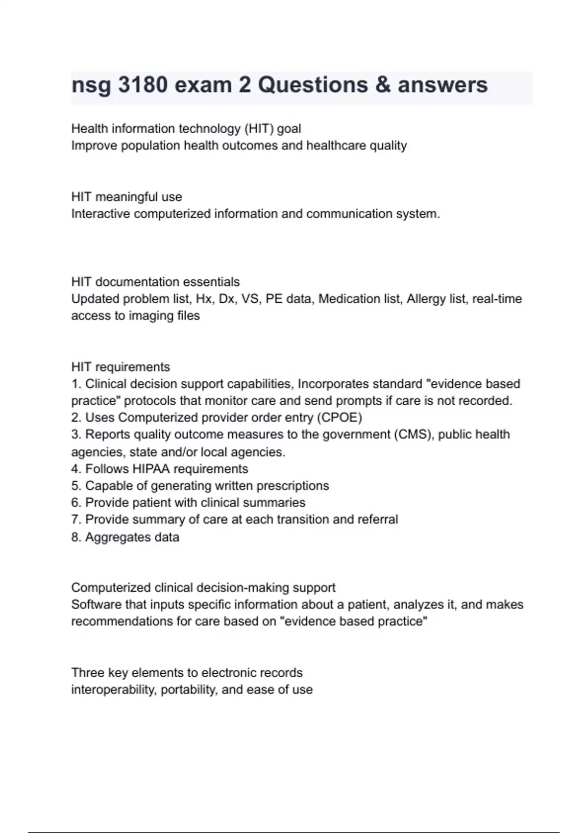 nsg 3180 exam 2 questions answers