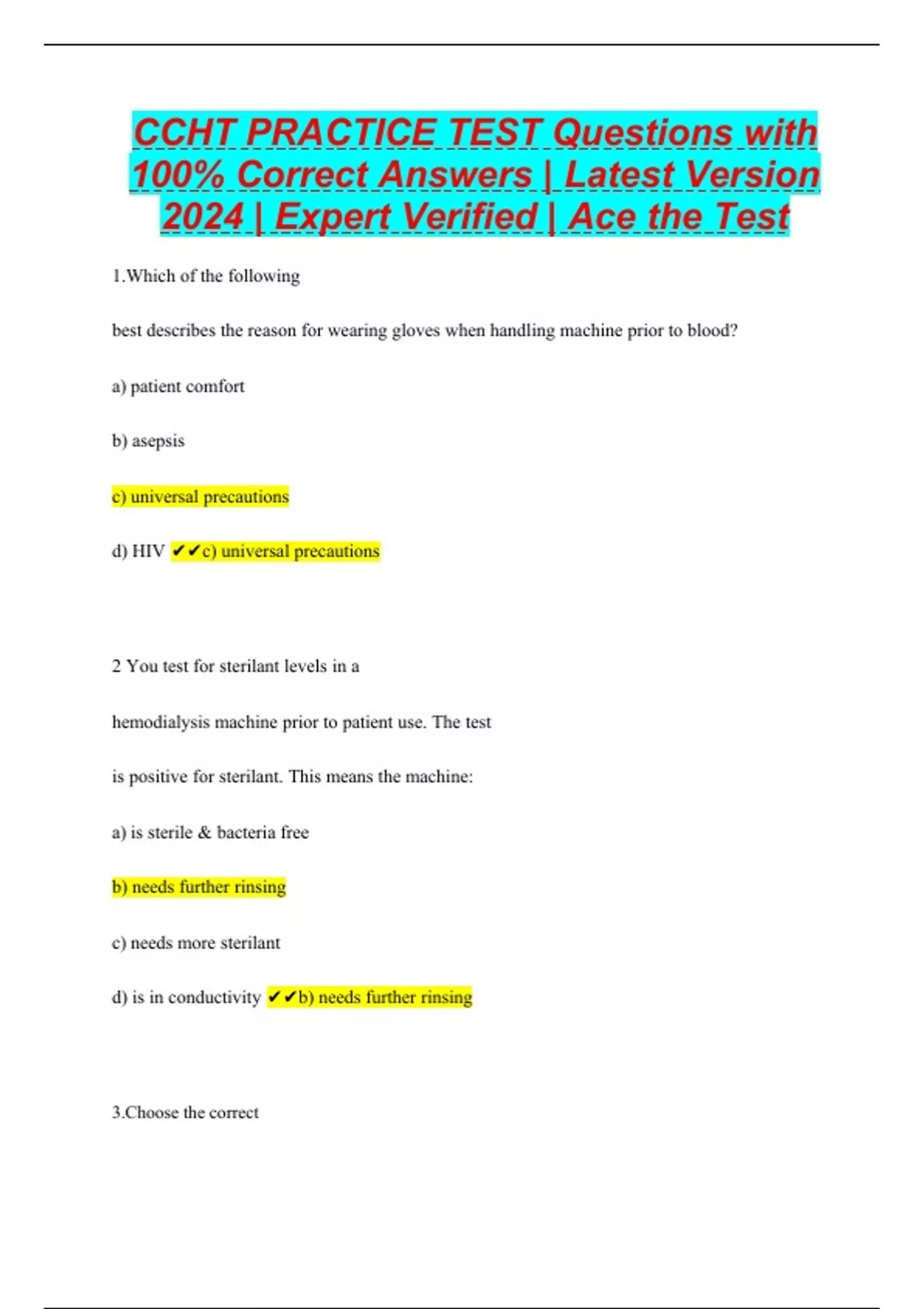 CCHT PRACTICE TEST Questions with 100% Correct Answers | Latest Version 2024 | Expert Verified | Ace the Test