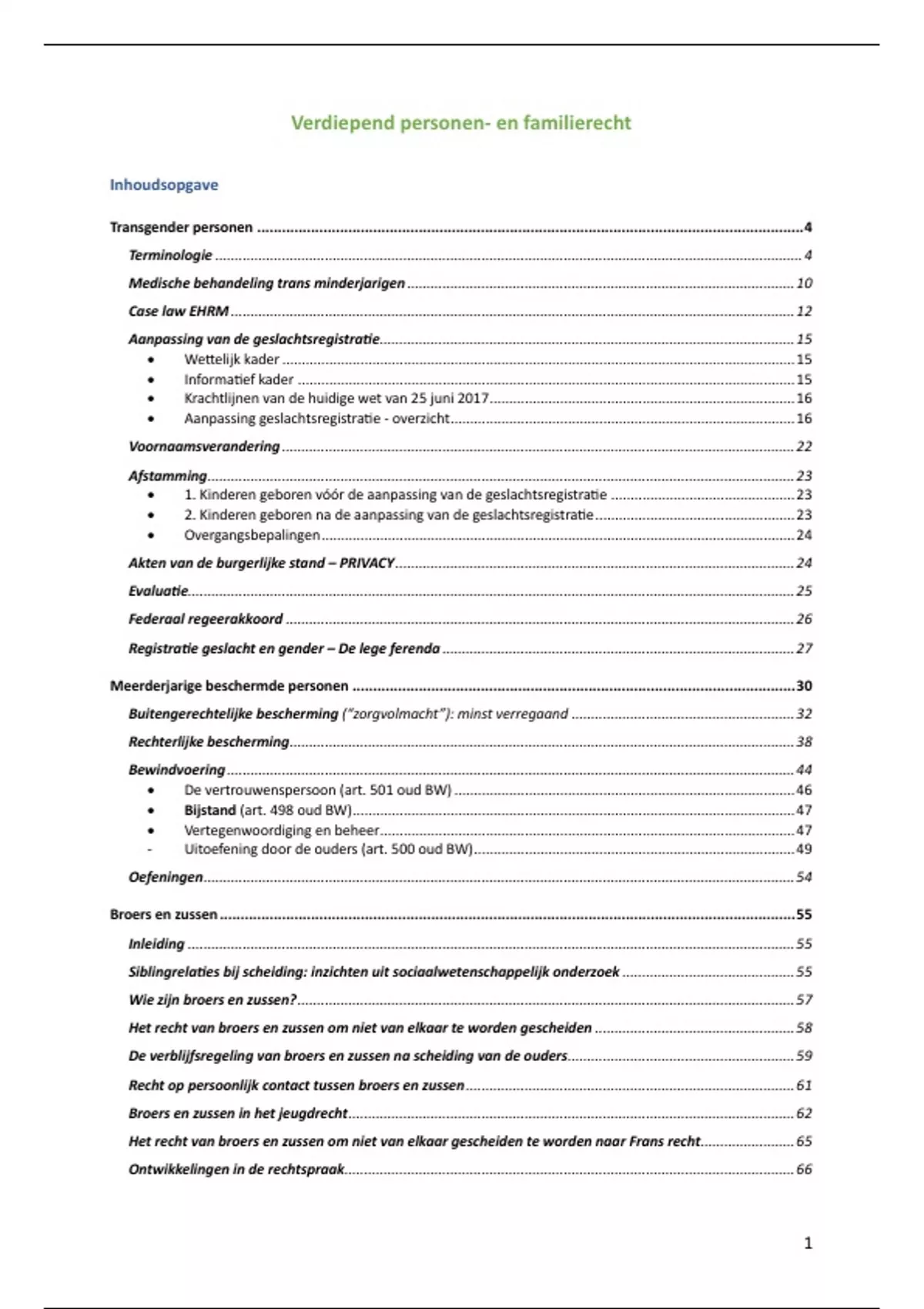 Deze samenvatting bevat alle lesnotities en slides van het vak verdiepende personen- en familierecht, gedoceerd door prof. Gerd Verschelden. Ik was geslaagd in eerste zit.