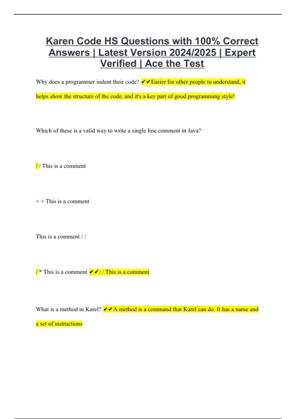 Karen Code HS Questions with 100% Correct Answers | Latest Version 2024/2025 | Expert Verified | Ace the Test