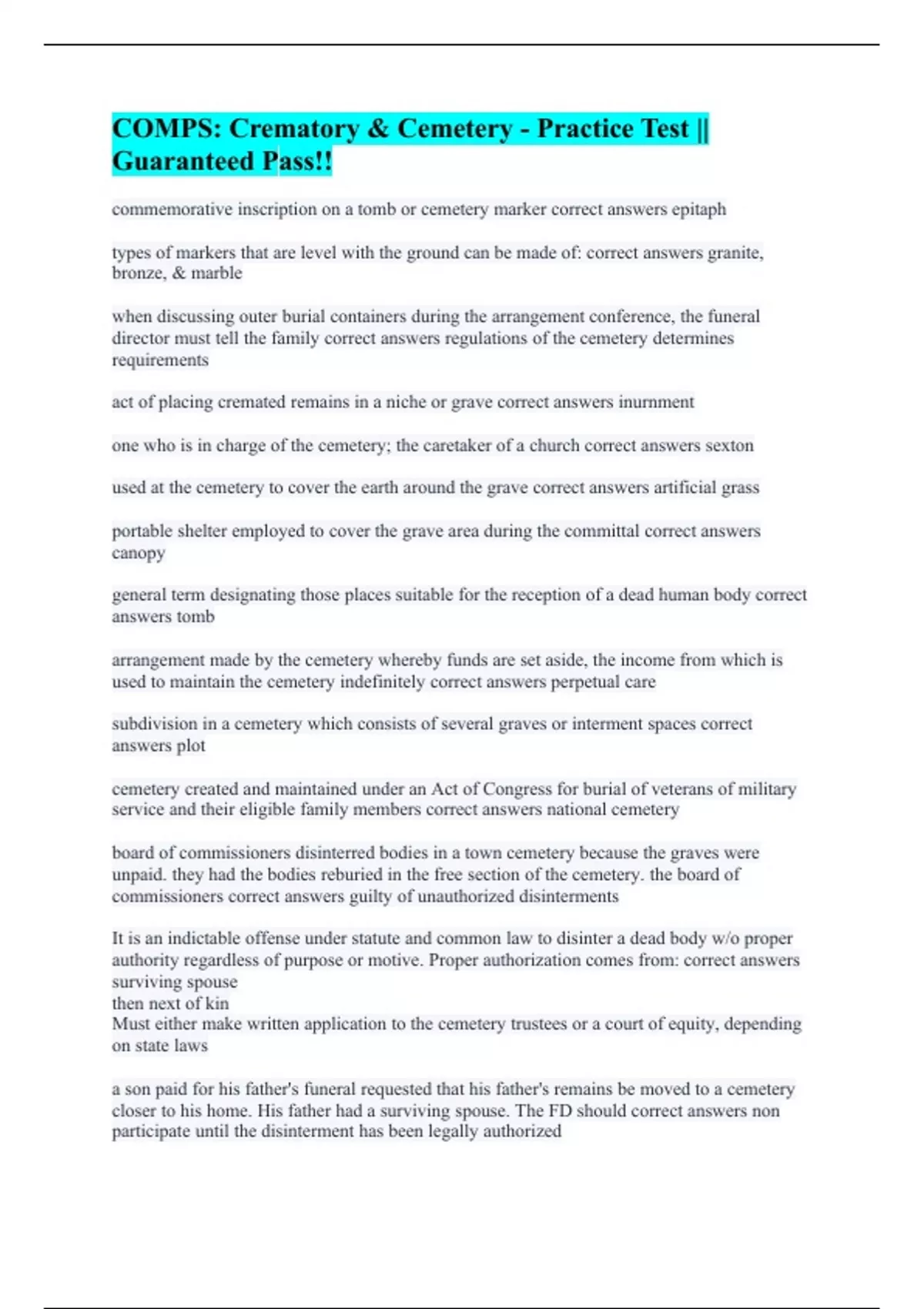 COMPS: Crematory & Cemetery - Practice Test || Guaranteed Pass!!