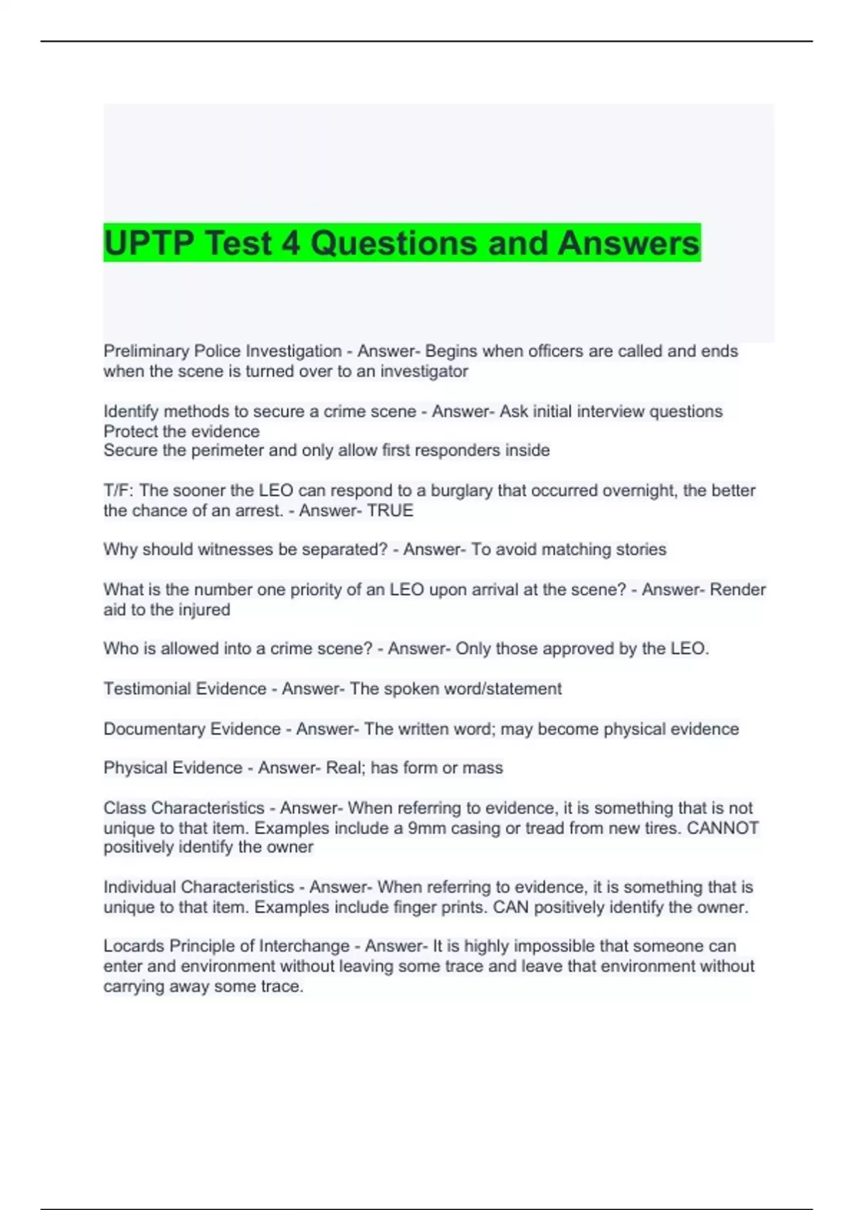 UPTP Test 4 Questions and Answers