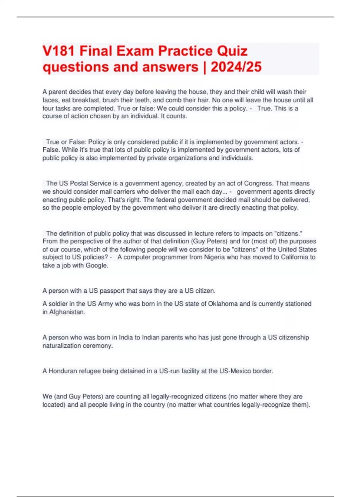 V181 Final Exam Practice Quiz questions and answers | 2024/25