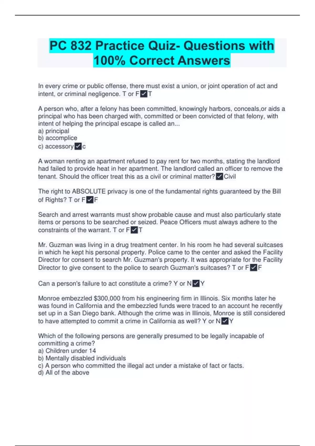 pc 832 practice quiz questions with 100 correct