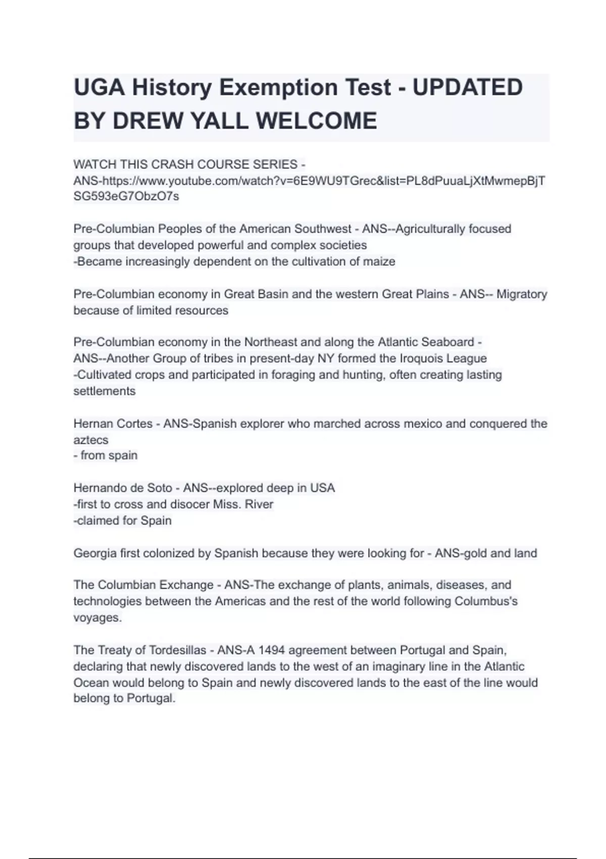 UGA History Exemption Test - UPDATED BY DREW YALL WELCOME.