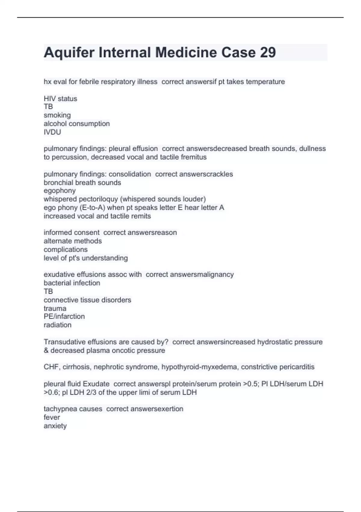 Aquifer Internal Medicine Case 29 with perfect answers 2024