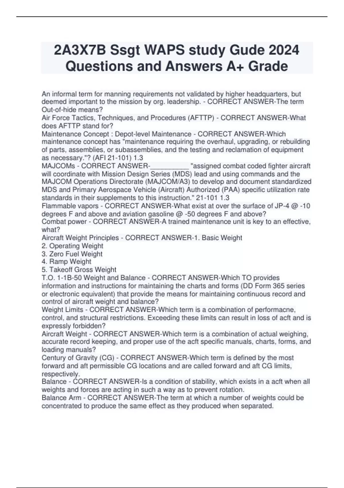 2A3X7B Ssgt WAPS study Gude 2024 Questions and Answers A+ Grade
