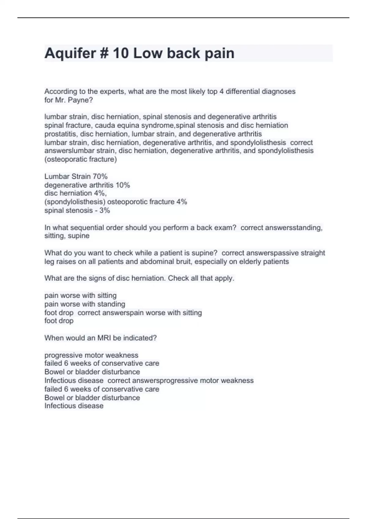 Aquifer # 10 Low back pain with perfect answers 2024