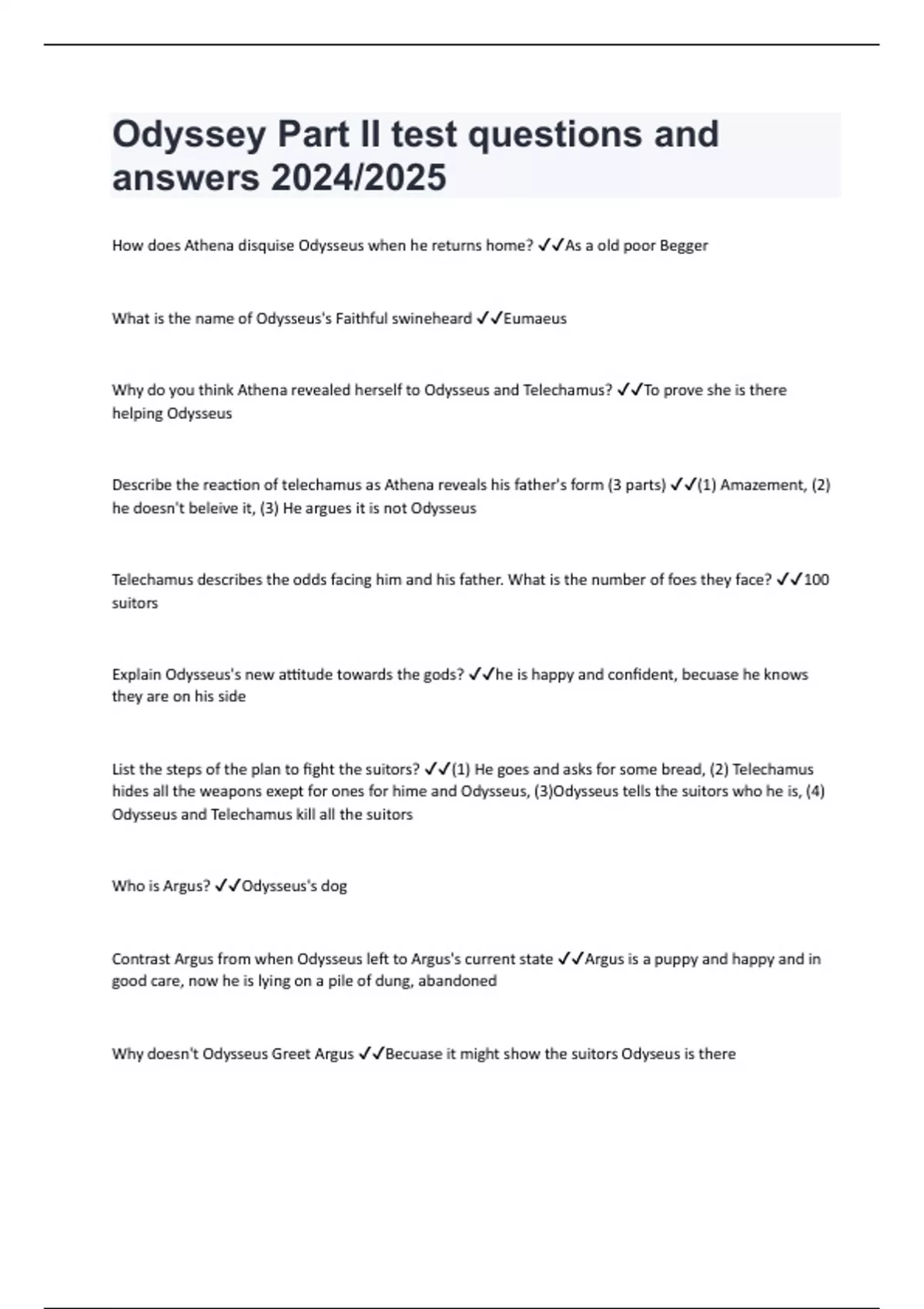 Odyssey Part II test questions and answers 2024/2025