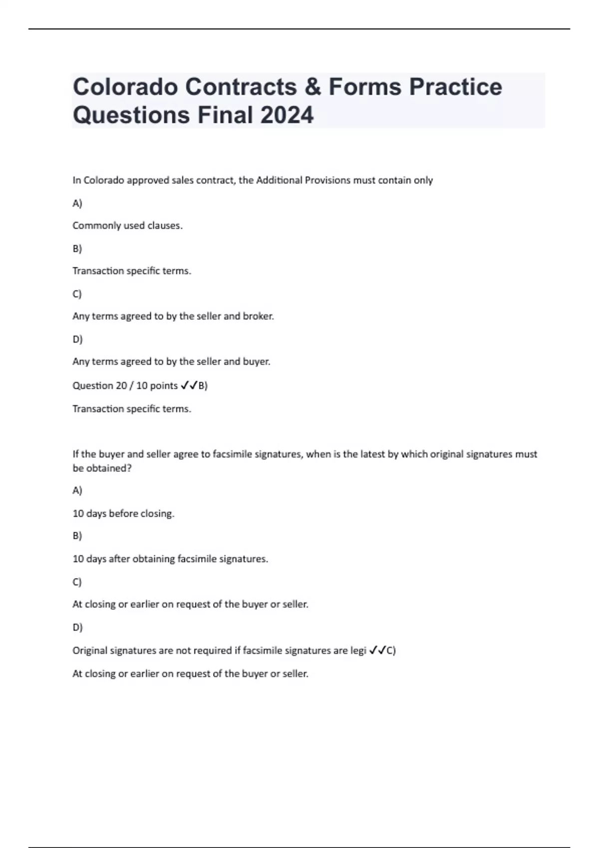In Colorado approved sales contract, the Additional Provisions must contain only