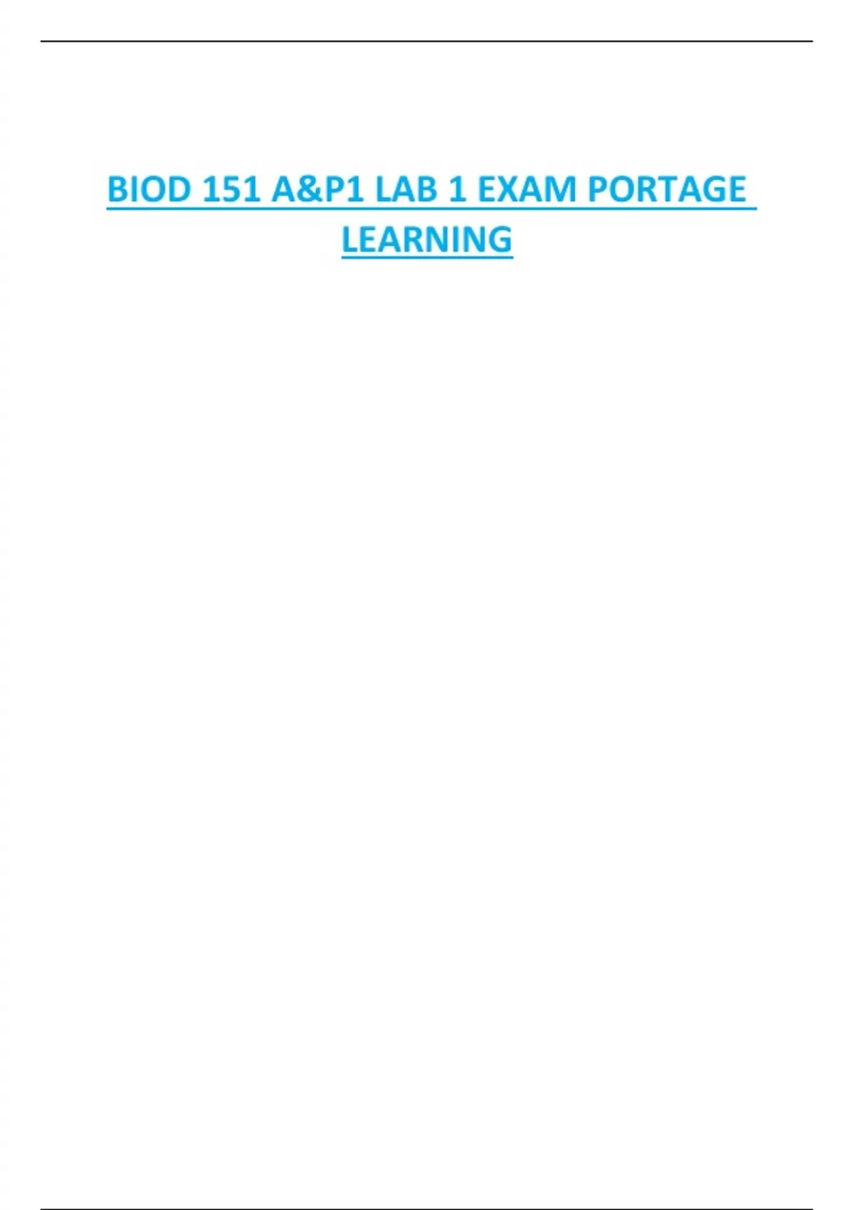 BIOD 151 A&P1 LAB 1 EXAM PORTAGE LEARNING