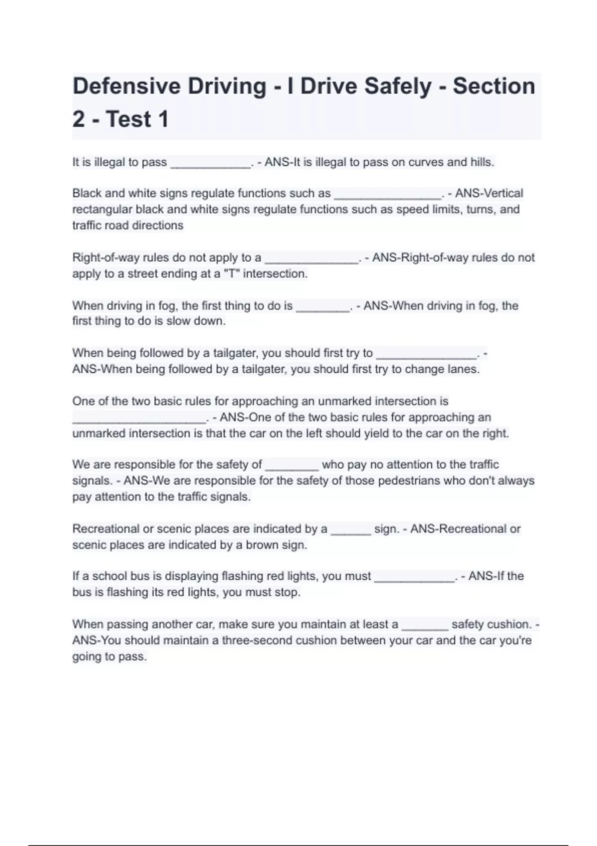 Defensive Driving - I Drive Safely - Section 2 - Test 1