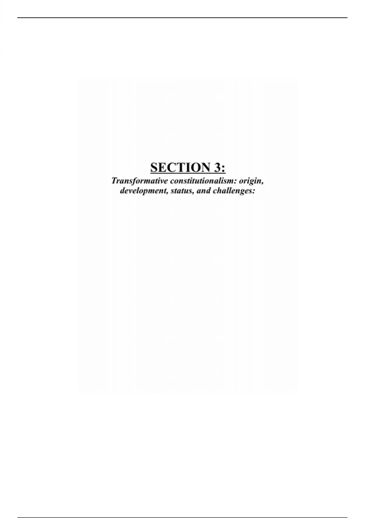This is a comprehensive and detailed summary on Section 3; transformative constitutionalism: Origin, development, status and challenges for this course, very important. U'll need it!!