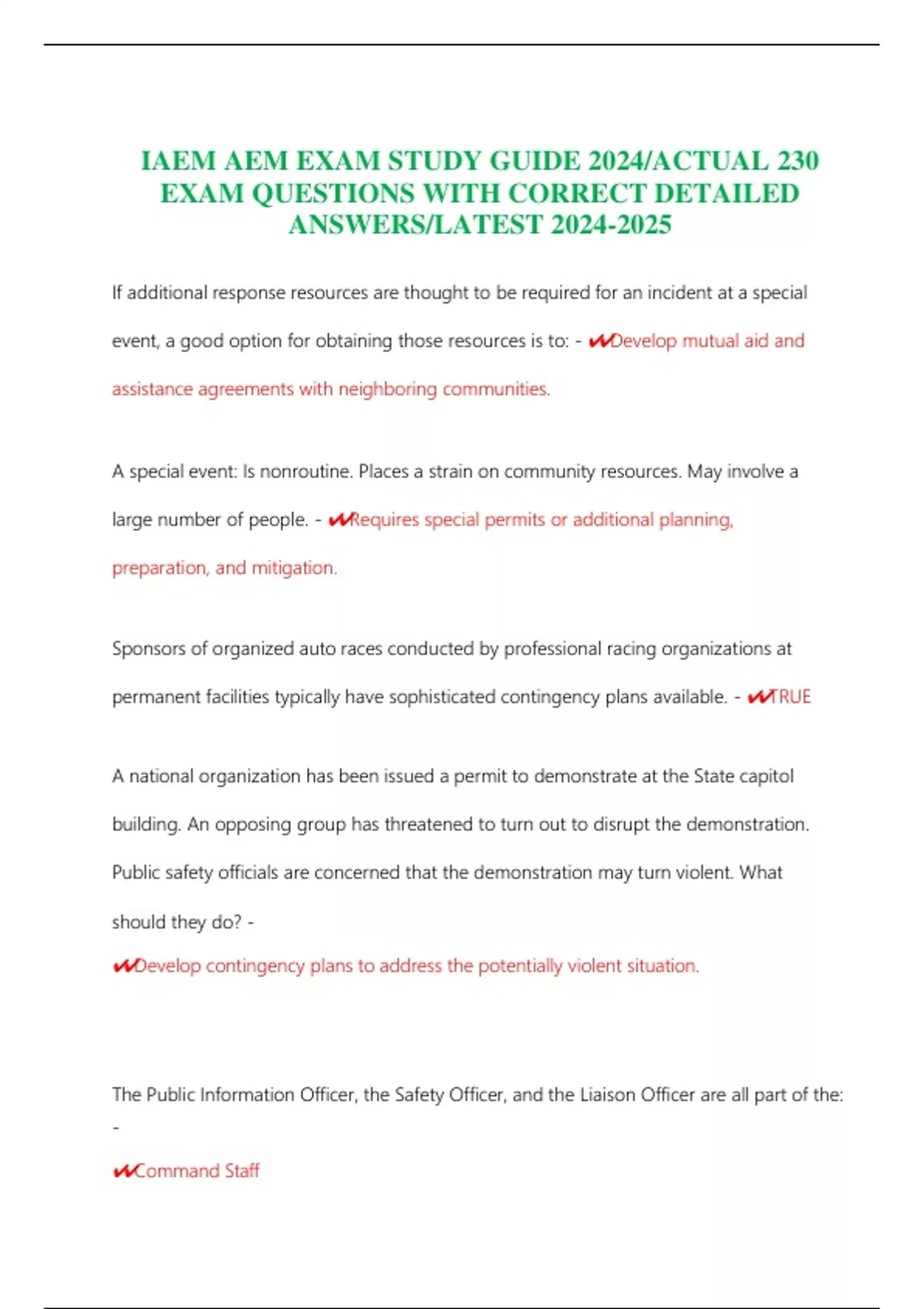IAEM AEM EXAM STUDY GUIDE 2024/ACTUAL 230 EXAM QUESTIONS WITH CORRECT DETAILED ANSWERS/LATEST