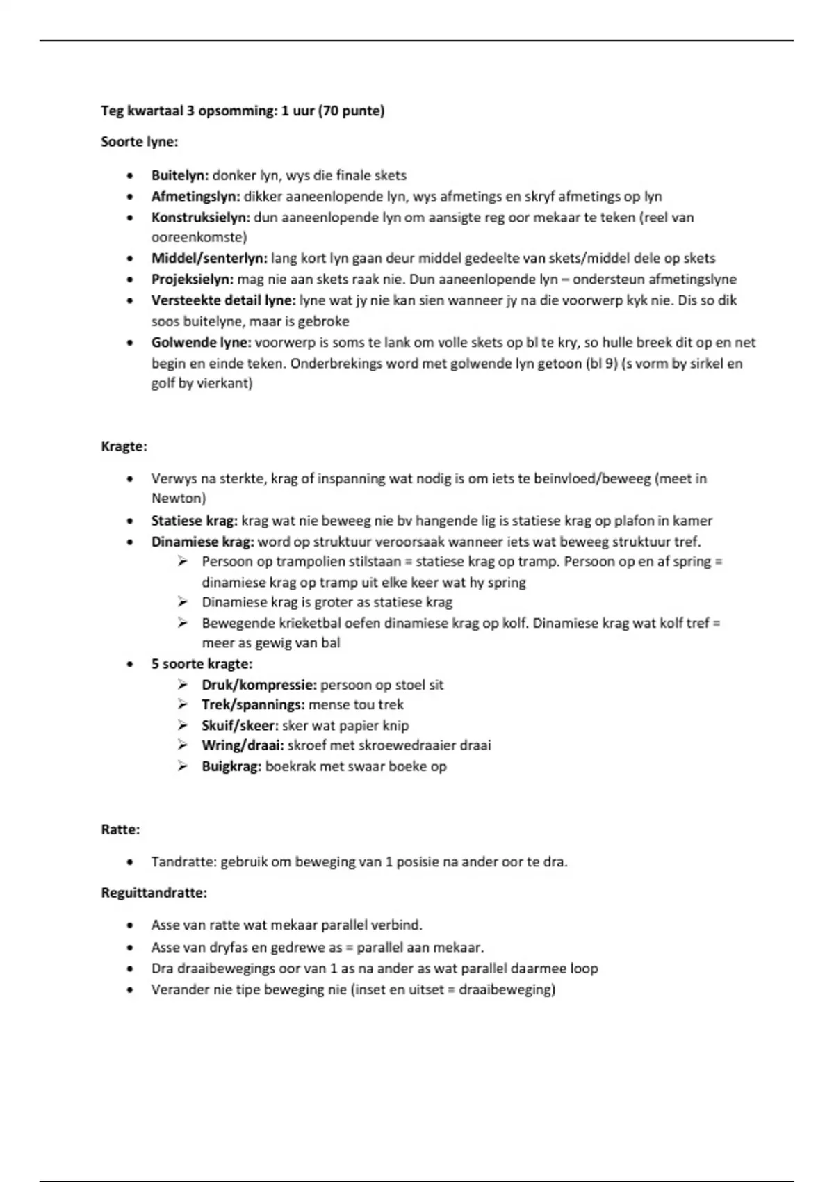 Teg kwartaal 3 opsomming: 1 uur (70 punte)