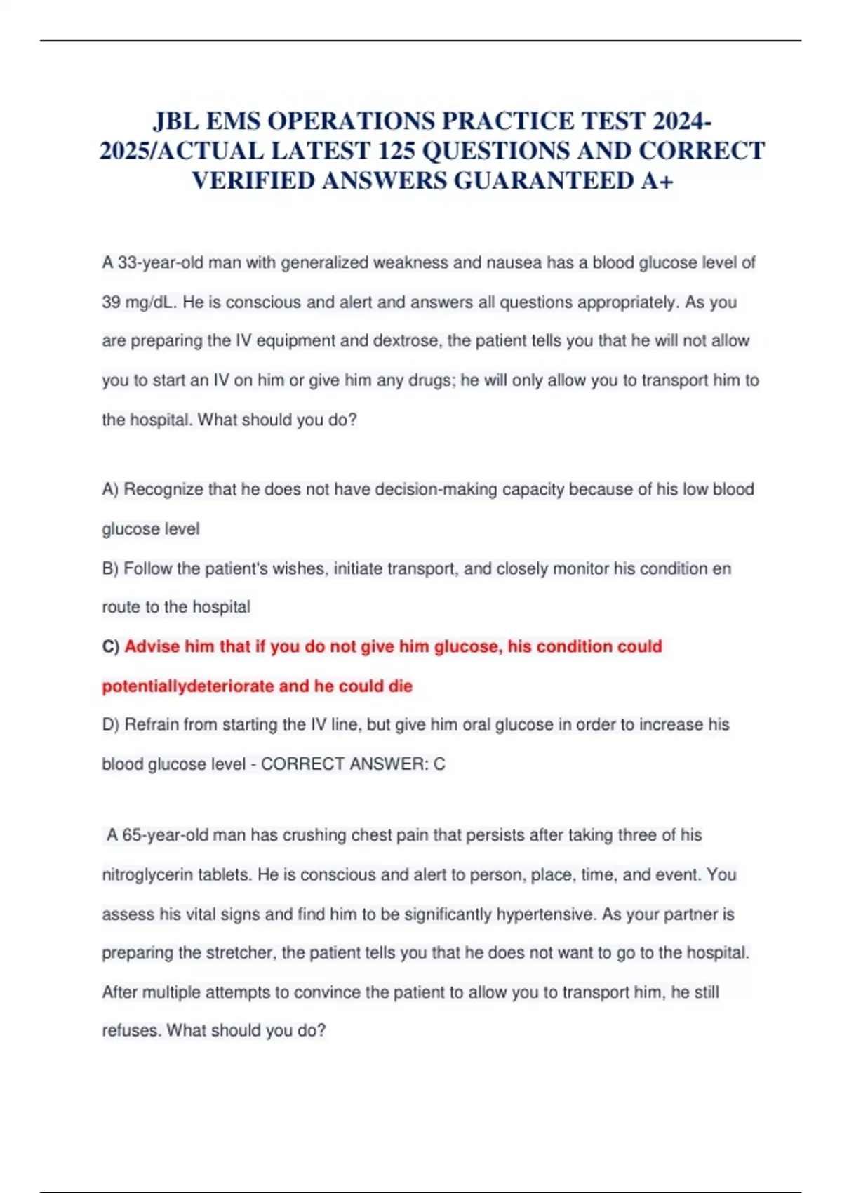 JBL EMS OPERATIONS PRACTICE TEST /ACTUAL LATEST 125 QUESTIONS AND CORRECT VERIFIED ANSWERS GUARANTEED A+