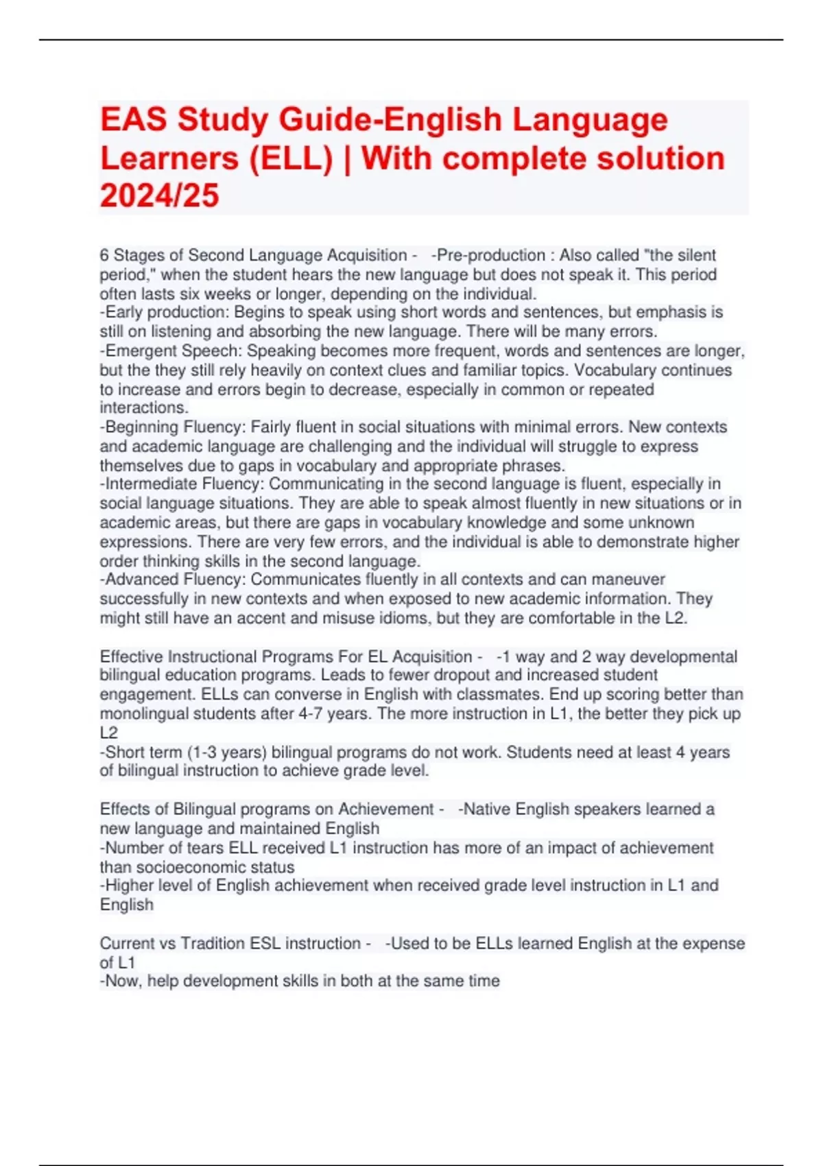 EAS Study Guide-English Language Learners (ELL) | With complete solution 2024/25