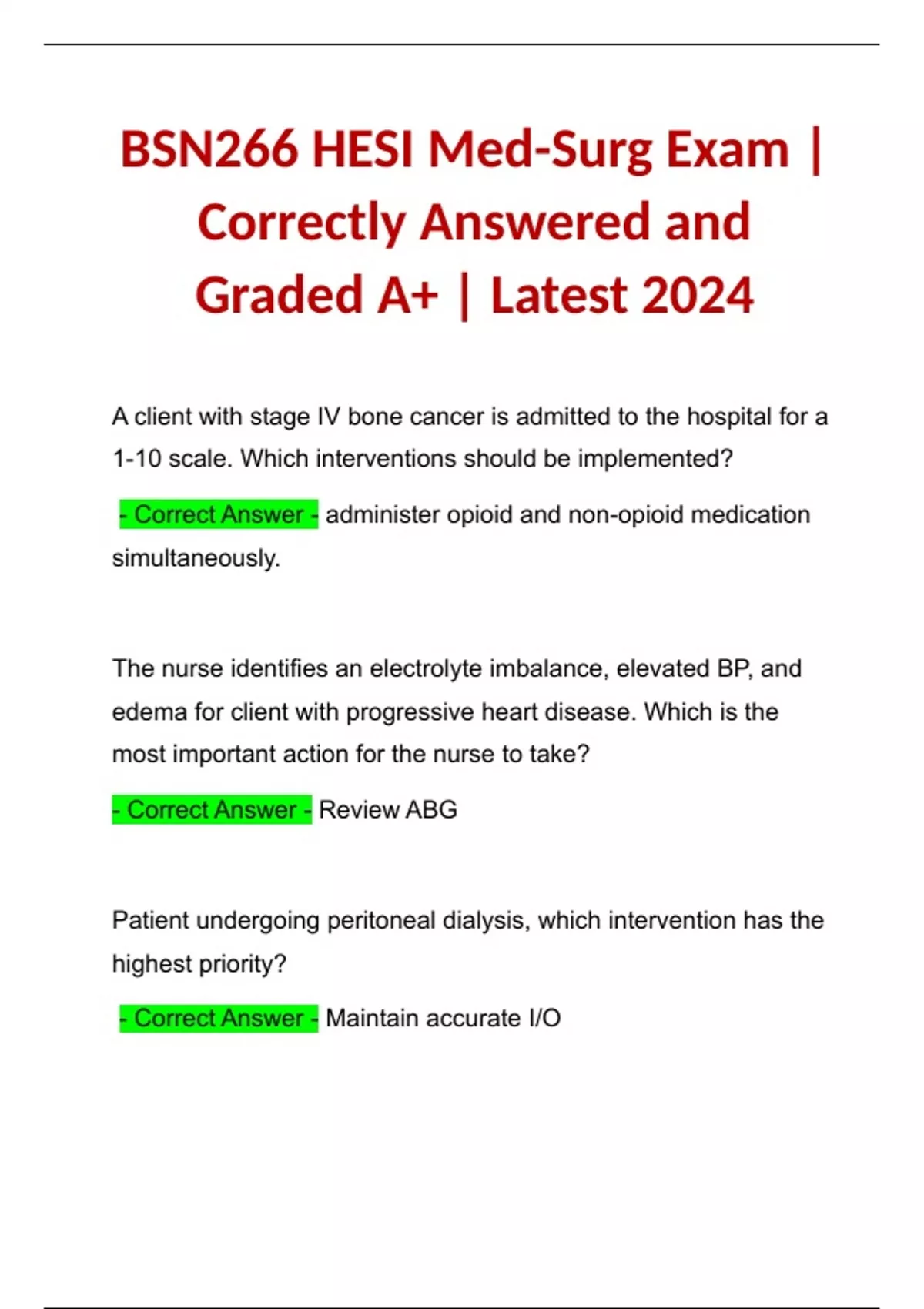 BSN 266 HESI 2024 Exam | Exam Study Guide| Guaranteed A+ BSN 266 HESI 2024 Exam | Exam Study Guide| Guaranteed A+