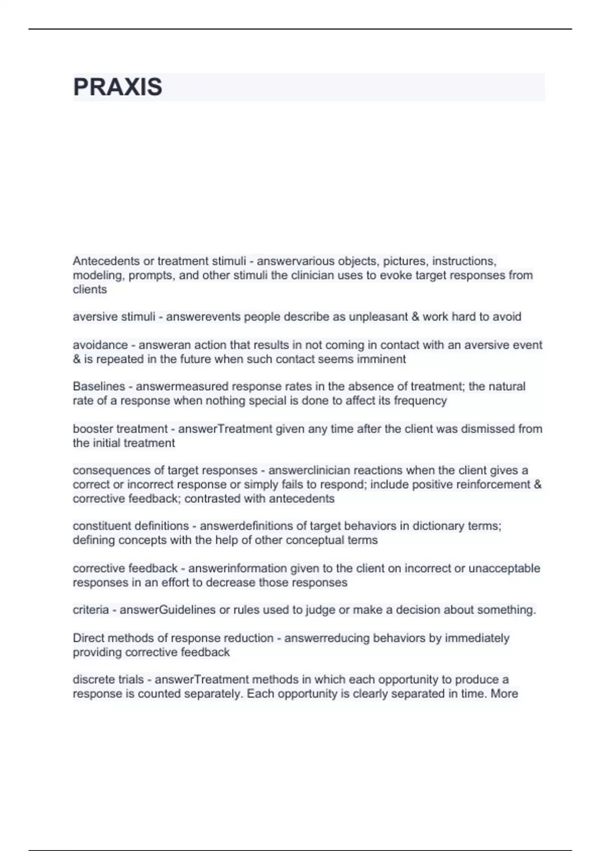 PRAXIS questions and answers Graded A+