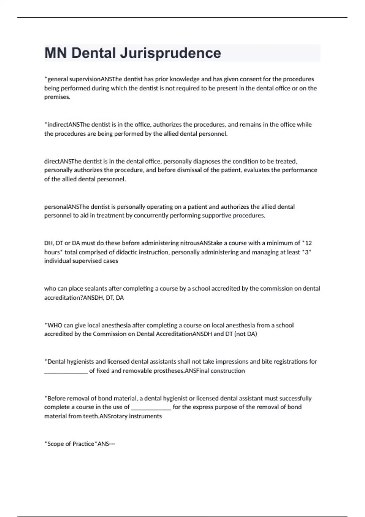 MN Dental Jurisprudence Exam Questions With Correct Answers